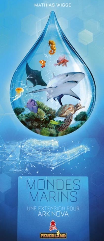 une extension pour Ark Nova, introduit plusieurs nouveaux éléments dans le jeu, tels que des animaux marins qui doivent chacun être placés dans de nouveaux enclos spéciaux qui doivent être construits à côté de l’eau.
