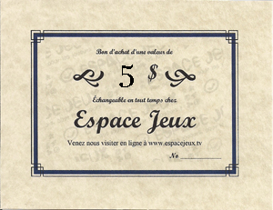 Carte cadeau de $5 – $5 taxes incluses