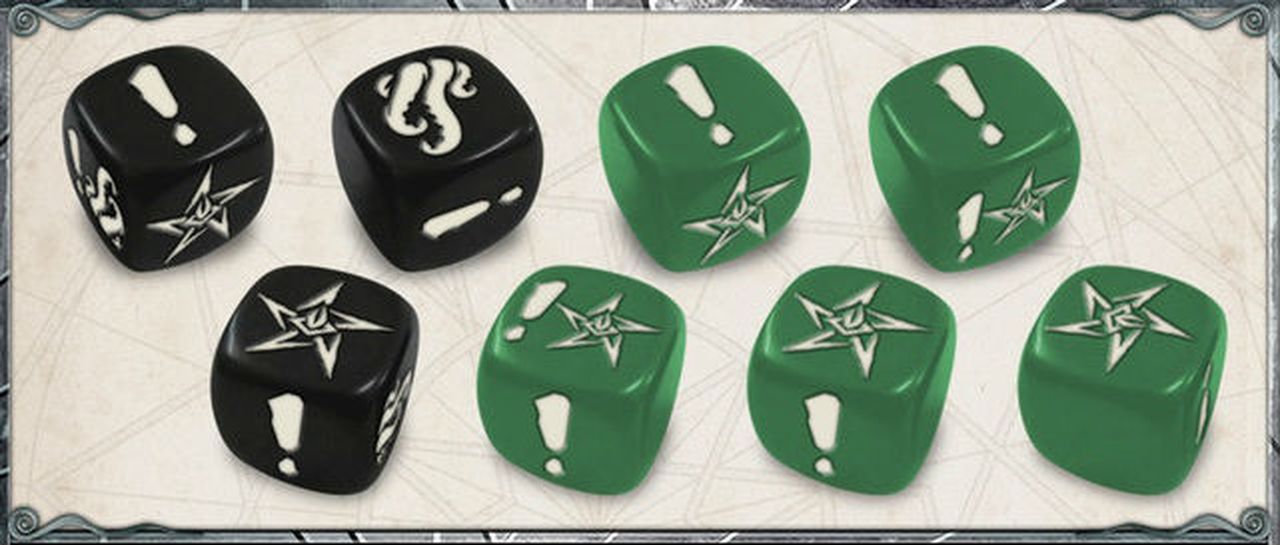 The Extra Dice Pack for Cthulhu: Death May Die gives players a full extra dice set for their games. The pack includes three black Basic dice as well as five green Special dice. This extra set means players don’t have to share as often, letting them keep the luck rolling on their own set.
