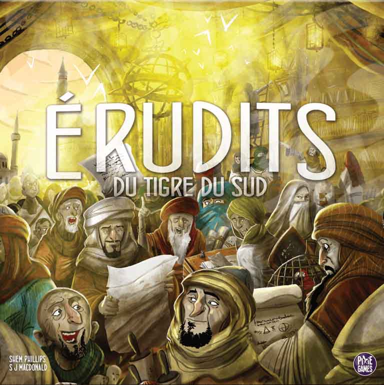 Rassemblez les parchemins et ramenez-les à la Maison de la Sagesse pour qu’ils soient traduits. Érudits du Tigre du Sud se déroule au plus fort du califat abbasside, vers 830 après JC. Le calife a fait appel aux esprits les plus vifs pour acquérir des manuscrits scientifiques du monde entier. Les joueurs devront accroître leur influence dans la Maison de la Sagesse et embaucher des linguistes qualifiés pour traduire les parchemins étrangers en arabe. En cet âge d’or de la sagesse et de la connaissance, veillez à ne pas négliger l’un dans la poursuite de l’autre. Le but du jeu est d’être le joueur avec le plus de points de victoire (PV) à la fin de la partie. Des points sont gagnés en traduisant des parchemins, en augmentant les connaissances dans divers domaines de la science et des mathématiques, en influençant les 3 guildes et en retirant les traducteurs après leurs années de loyaux services. La fin de partie est déclenchée une fois que les 4 cartes calife ont été révélées.