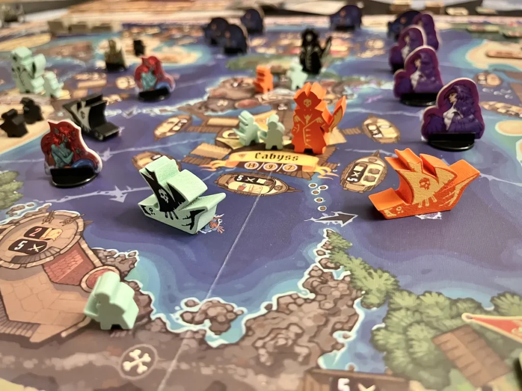 In the box, you’ll find unique player power tiles, asymmetric player boards, screen-printed captain figures, screen-printed pirate ship figures, 108 pirate figures, event cards, and a lot more.