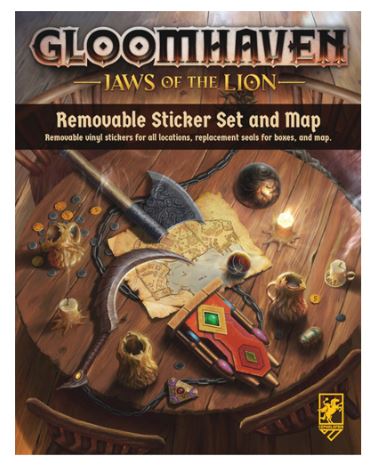Reset, replay, or resell your copy of Gloomhaven: Jaws of the Lion with this set of high quality removable vinyl stickers and city map board from Cephalofair. Featuring non-transferring adhesive, these stickers can be removed without damaging or tearing components.