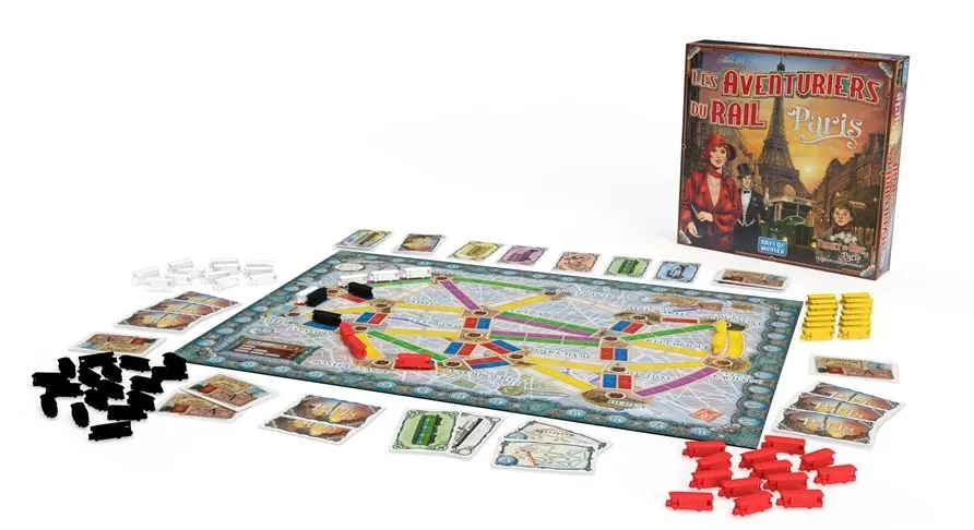 Profitez de la Ville Lumière ! Retrouvez-vous transporté dans le Paris glamour des années folles. Montez à bord d’un bus à plate-forme ouverte, descendez les Champs-Élysées, admirez la Tour Eiffel et terminez votre journée en profitant d’un coucher de soleil pittoresque depuis une charmante terrasse à Montmartre. Dans ce jeu Les Aventuriers du Rail au rythme effréné, les joueurs s’affrontent pour visiter les lieux les plus emblématiques de la ville et compléter leurs billets de destination. Le joueur gagnant utilisera efficacement le réseau de bus parisien dans cette nouvelle version très unique.