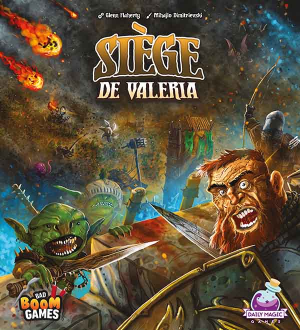 Siège de Valeria est un Tower-Defense solo épique ! Dans ce jeu vous chercherez à résister à l’assaut des hordes de monstres qui, vague après vague, tentent de submerger les murailles de votre château. Et comme si les créatures monstrueuses et la sorcellerie ne suffisaient pas, au loin s’avancent des engins de guerre aux effets destructeurs. Vous savez que votre temps est compté… Pour faire face, vous n’aurez que vos dés et votre sens du combat ! Mais chaque fois que vous éliminerez une créature, celle-ci vous octroiera un effet primordial pour mieux vaincre les monstres des Sombres Royaumes. Combinez vos effets de cartes et vos dés pour optimiser vos attaques… sinon votre muraille pourrait bien céder ! ** Extension Campagne incluse !