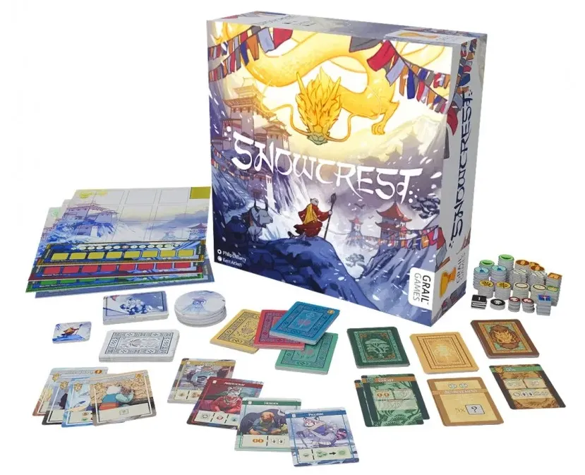 Snowcrest est un jeu de cartes de construction de tableaux. Chaque joueur développera un village dans les montagnes de Snowcrest, en essayant de prospérer sur le sol glacé.